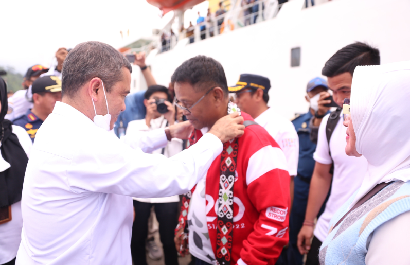 Samarinda - Rabu (9/11/2022). - Gubernur Sulawesi Tengah H. Rusdy Mastura didampingi Ketua TP-PKK, Provinsi Dr. Hj. Vera Rompas Mastura, S,Sos, M.Si, bersama Dinas Pariwisata Provinsi Sulawesi Tengah beserta rombongan tiba di Kota Samarinda, Kalimantan Timur. Gubernur Sulawesi Tengah H. Rusdy Mastura bersama rombongan yang terdiri dari Bupati Donggala, para Kepala Dinas, Badan, Kantor dan Biro menaiki Kapal Tol Laut Sabuk Nusantara 89 yang merupakan kapal transportasi laut Depature Wani Kota Palu Sulawesi Tengah, Samarinda Kalimantan Timur.