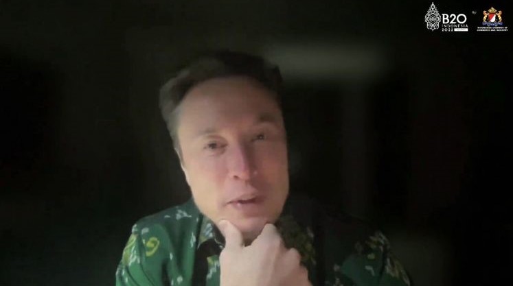 Chief Executive Officer (CEO) Tesla dan Twitter Elon Musk mengenakan batik dalam perbincangan virtual dengan Anindya Bakrie di kegiatan B20 Summit pada Senin (14/11/2022).