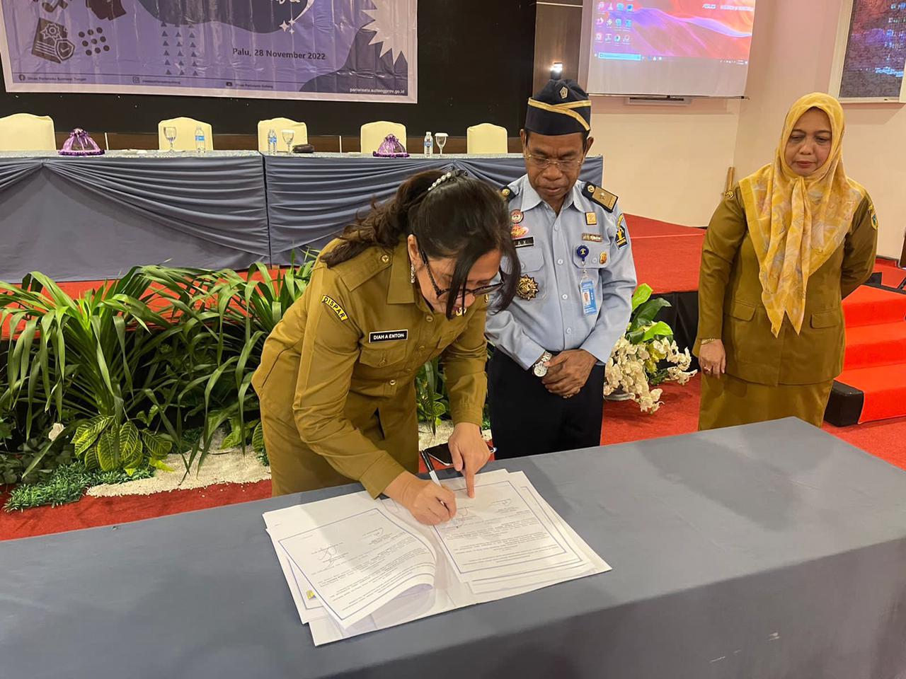 Kegiatan ini dilakukan sekaligus dengan penandatanganan perjanjian kerja sama antara Max Wambrau, S.H dari Devisi Pelayanan Hukum dan Hak Asasi Manusia Kantor Wilayah Kementerian Hukum dan Hak Asasi Manusia Sulawesi Tengah dengan Dra. Diah Agustiningsih, M.Pd dari Dinas Pariwisata Provinsi Sulawesi Tengah, yang dimaksudkan untuk menunjang pelaksanaan tugas dan fungsi kedua belah pihak dalam rangka peningkatan kreativitas para Pelaku Ekonomi Kreatif dan Pariwisata di bidang Kekayaan Intelektual, serta pemanfaatan potensi sumber daya yang dimiliki oleh kedua belah pihak untuk mendukung pelaksanaan sistem Kekayaan Intelektual Nasional. Adapun tujuan dari perjanjian kerja sama ini yaitu, untuk meningkatkan pemahaman dan kesadaran di kalangan Pelaku Ekonomi Kreatif dan Pariwisata serta pada Dinas Pariwisata Provinsi Sulawesi, mengenai sistem Kekayaan Intelektual dalam meningkatkan jumlah permohonan Kekayaan Intelektual.